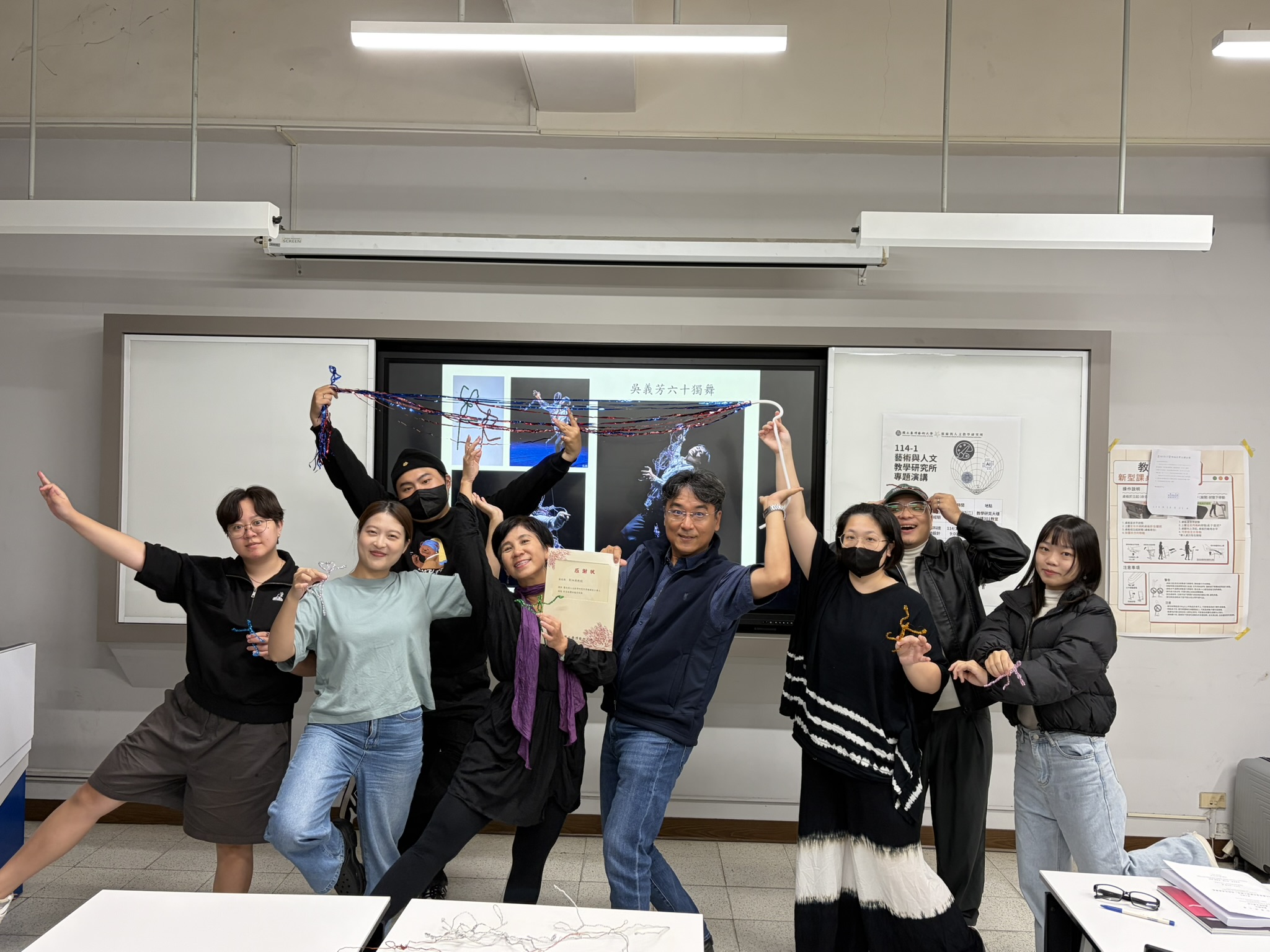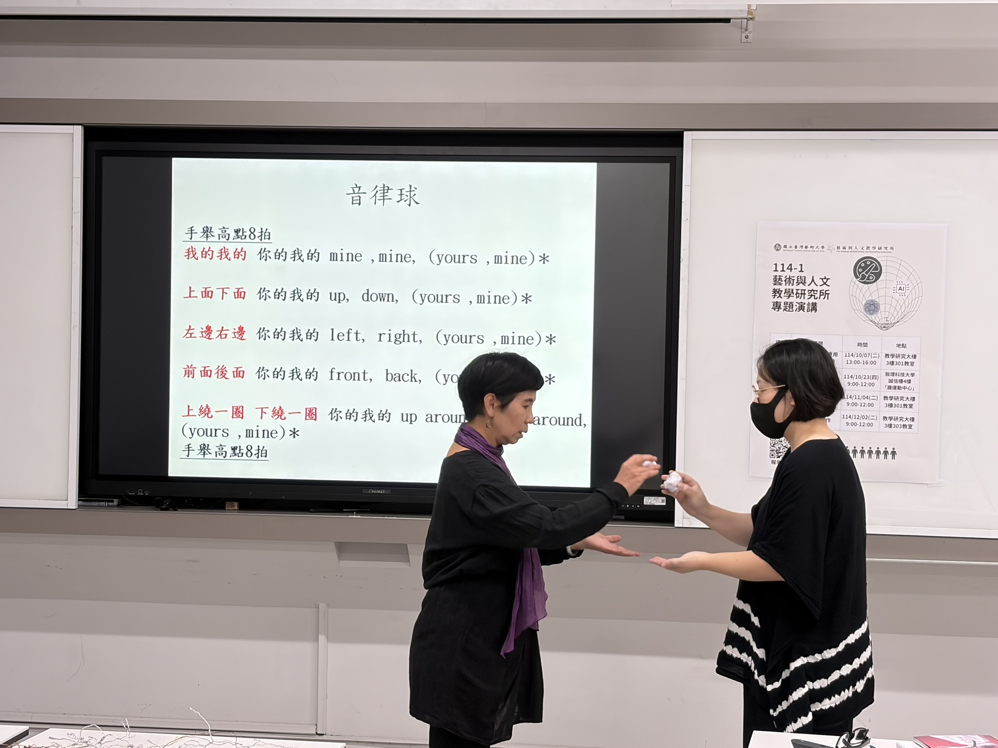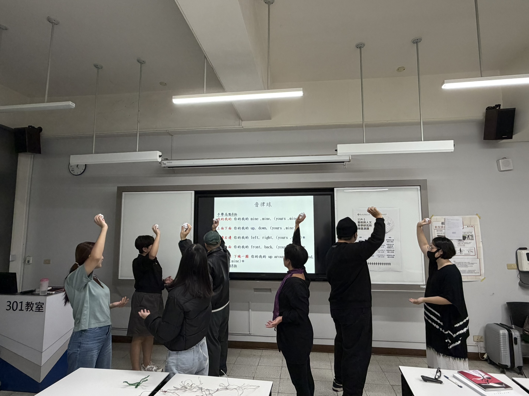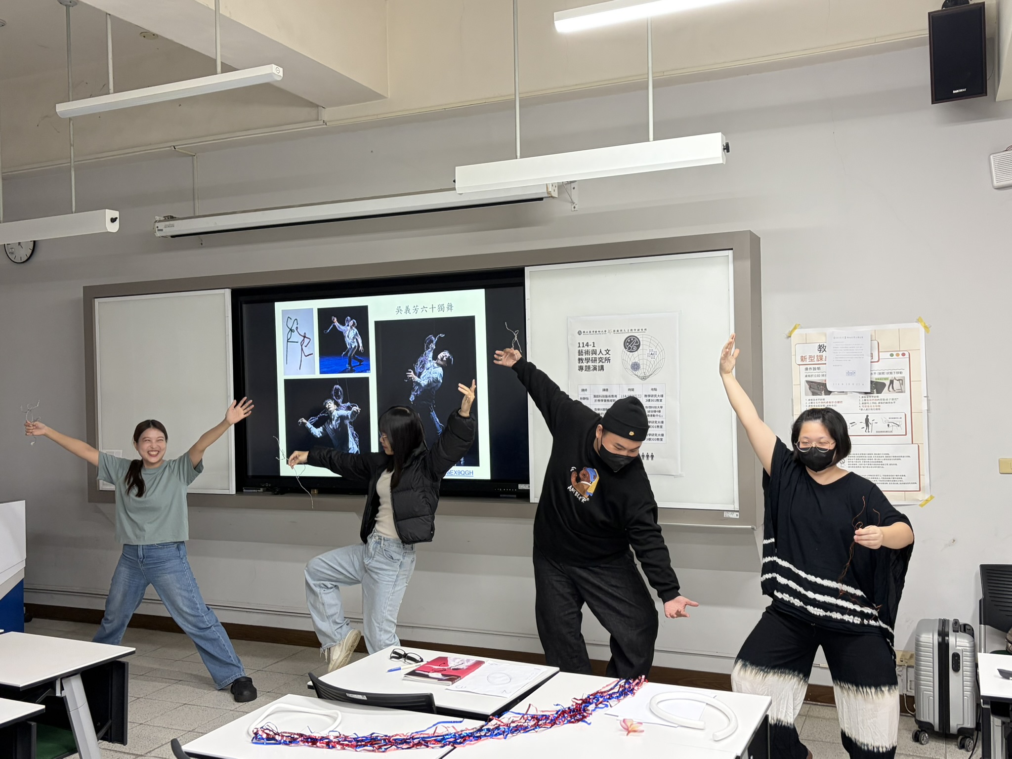 本學期第3場專題講座,於114年11月4日舉辦,邀請國立清華大學劉淑英教授,帶來主題為創意肢體的腦思啟動,透過舞蹈歷史脈絡的引導與舞蹈家的介紹,同時搭配肢體活動的進行,讓參與的師生都能體驗到,生活中隨處可得的一張紙,一條線或是一顆球,只要運用得當,都能成為展現個人肢體線條的好工具。經過講師的帶領,學生都充分展現與開啟個人肢體的線條感與美感,活動氣氛熱絡,感謝講師為所上學生所帶來的特殊體驗經歷!